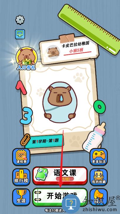 2、点击红框标注的绿色开始游戏按钮,进入卡皮巴拉幼稚园。