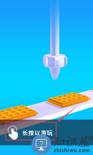 2、根据红框提示长按屏幕,开始制作华夫饼。