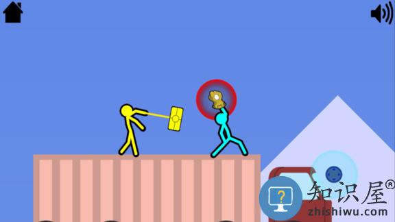 2、使用红框标注的蓝色摇杆,控制火柴人角色移动。