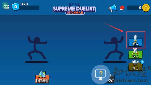 2、选择红框标注的浅蓝色单人模式按钮,开始游戏。