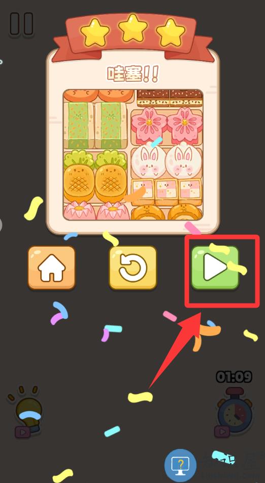 4、恭喜你过关了,点击红色框框按键继续下一关。