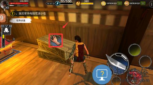 1、进入游戏移动角色到木箱前面可以捡取道具。
