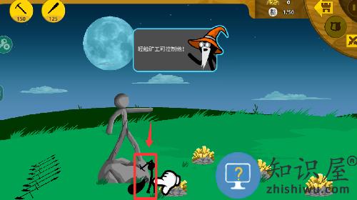 一开始最好先出个矛,然后出8个矿工(因为一个矿最多只能两个同时挖,太多的话矿工会跑到对面的矿区去挖),然后等敌人来了后控制矛兵,然后让矿工撤退,让城堡弓兵射,你就顶个盾吸引伤害不让敌人打雕像就行了