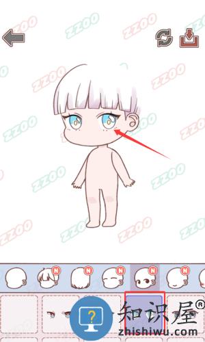 3、根据红框提示点击发型图标,为角色更换蓝色眼睛。
