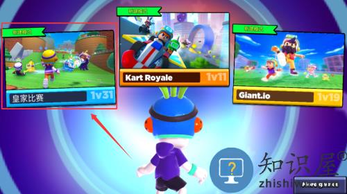 3、根据红框箭头提示,点击绿色皇家比赛开始游戏。