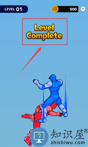 2、查看红框内关卡完成提示,获得900金币奖励。