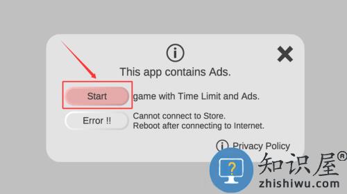 3、阅读广告提示后,点击红框Start按钮开始游戏。