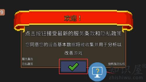 1、阅读欢迎语后,点击红框箭头指向的绿色对勾按钮同意条款。
