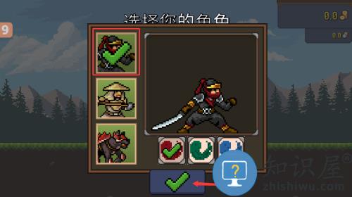 2、选择红框标注的绿色面罩忍者角色,点击对勾按钮确认。