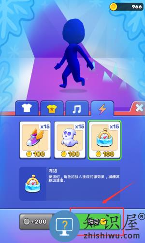 3、点击红框箭头指向的冻结道具,购买并装备技能。