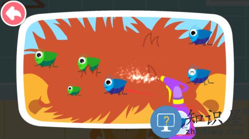 2、使用红框标注的紫色喷雾瓶,消灭蓝色昆虫。
