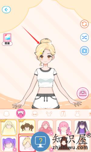 3、根据红框箭头提示,选择丸子头发型更换角色造型。