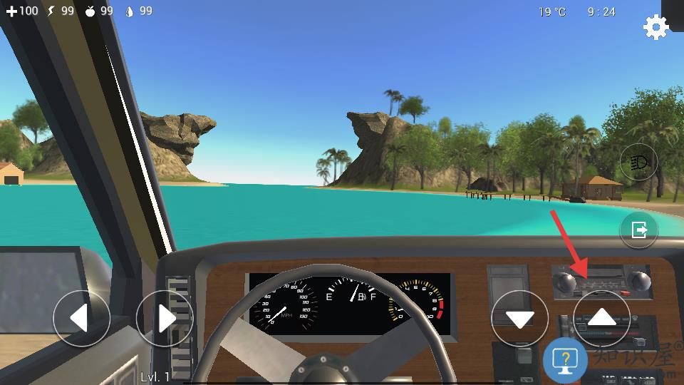 1、从水塔附近废弃房屋起步,点击汽车部件进行维修与资源装载。