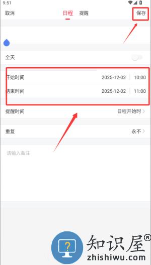 4、选择开始的时间还有结束的时间完成后点击右上角的保存即可。