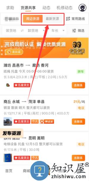 3、卡友江湖栏目可浏览周边与最新发布的货物运输资源信息。