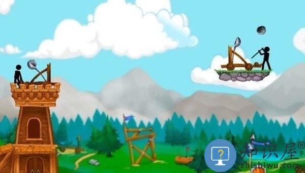 玩家对付敌人是通过发射石头的方法,有点像奋斗的小鸟