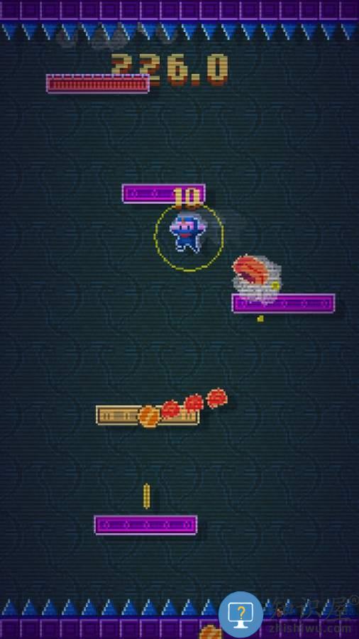 1、通过点击屏幕左右两侧控制角色移动跳跃于平台之间。