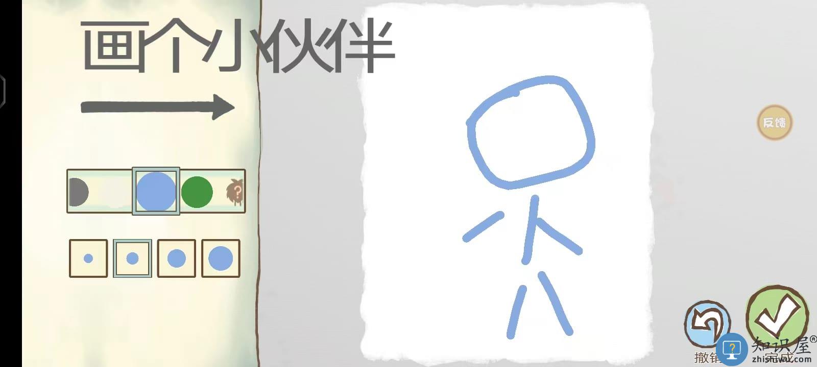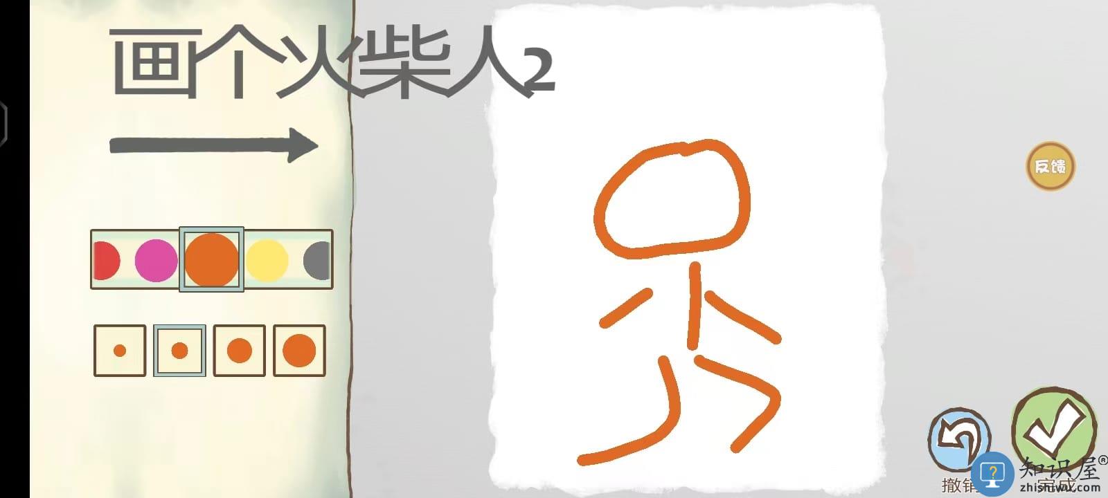1、在本网下载游戏并且打开进入,需要现在右边的画板中画一个火柴人,画完之后,点击右下角的【√】;