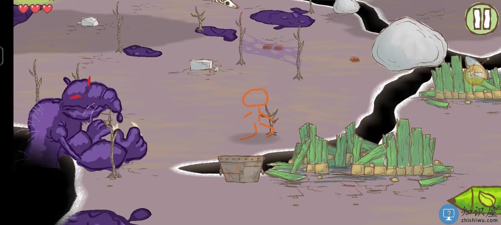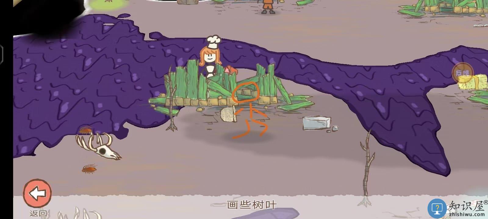 9、当碰到怪兽的时候,玩家可以在怪兽旁边的树上画点树叶,怪兽就会消失;