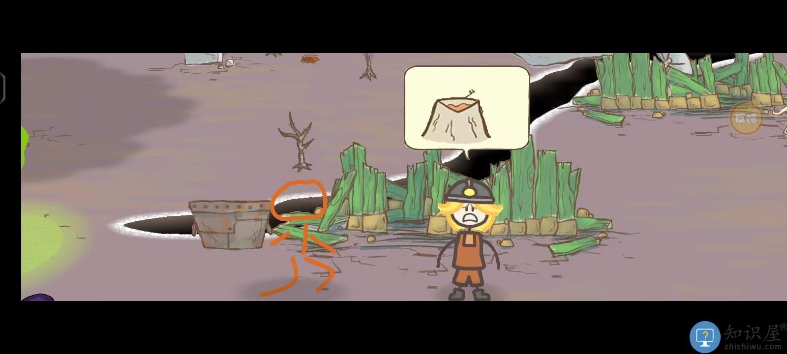 10、之后会碰到一个人,然后玩家需要往上走解救一个被困的人;也就是用右下角那支绿色的笔画树叶;