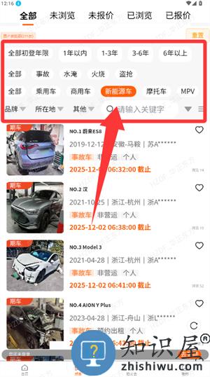 2、在所车页面筛选并搜索,定位所需的特定车辆信息。