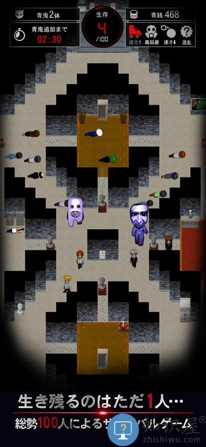 100名参与者和青鬼在线生成(其中100名也包括NPC),玩家控制100人当中的其中一个,逃离青鬼的追踪,直到最后一个获胜,