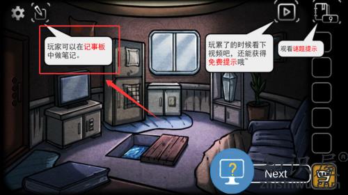 2、点击红框标注的Next按钮,查看游戏提示和笔记功能。