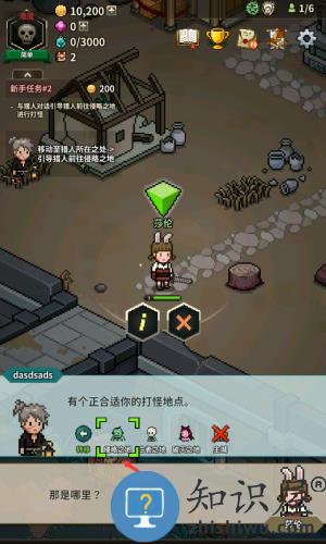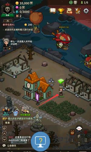 1、点击红框箭头指向的紫色名字猎人,完成新手任务1对话。
