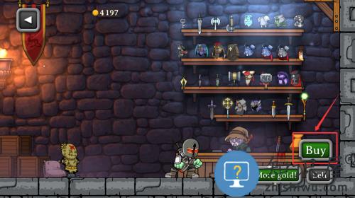 2、在商店界面点击红框购买按钮,用金币获得装备。