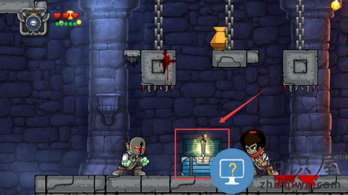 1、点击红框箭头指向的蓝色宝箱,拾取剑柄装备武器。