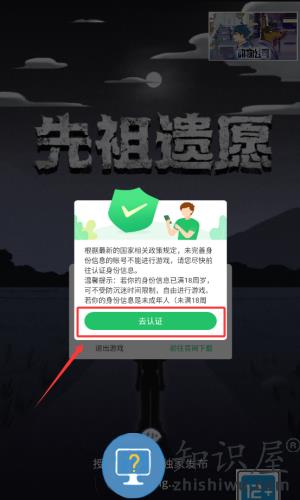 1、阅读防沉迷提示后,点击红框标注的去认证按钮。