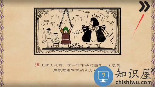 2、阅读故事后,点击红框箭头指向的下一页按钮。