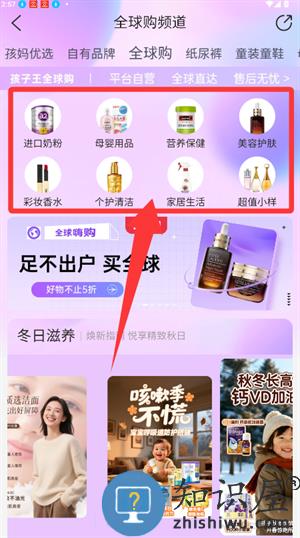 2、选择进口奶粉、母婴等分类,查看相关商品列表。