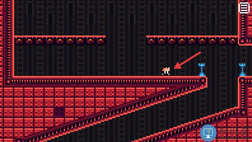 开局简单的复古画面,极其简单的操作方式,只需要超控左右两个按钮,游戏里有很多弹跳球,让玩家可以通过弹跳往上走,虽然操作方式很简单,但是真的很难,上来5分钟基本感觉就是地狱难度,开局不久就有个需要弹跳机关5连,每跳一颗都需要把握住距离还必须非常迅速,在这里不断的从来,