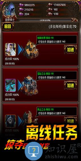 升级各种特殊建设,研究科技,训练军团,升级英雄.让你军团实力逐渐成长壮大.