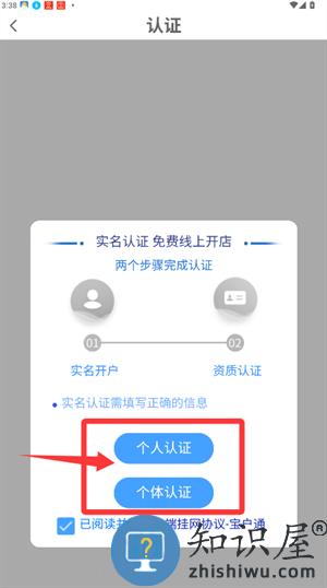 2、勾选协议并选择认证类型,进入对应开户环节。