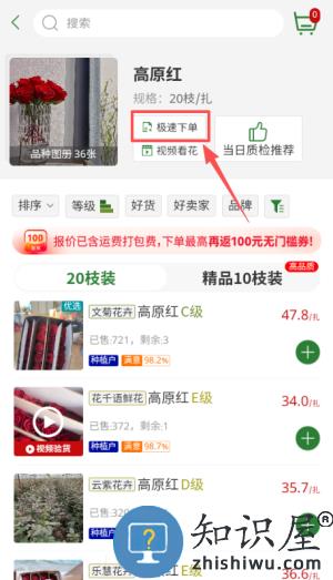 3、点击极速下单按钮,选购对应规格花材。