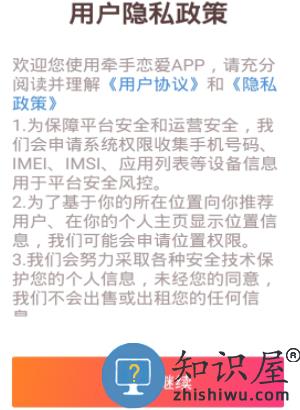1、在牵手app中点击"同意并继续",进入欢迎页面。