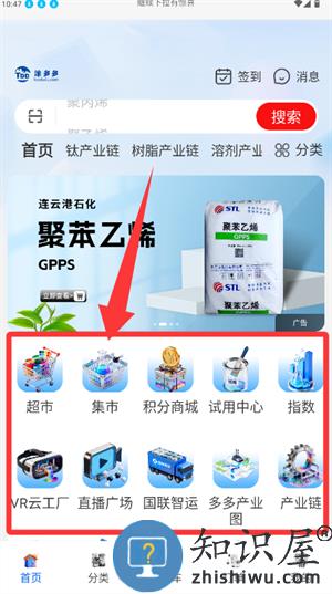 1、从首页功能区进入集市选项,浏览商品展示页。