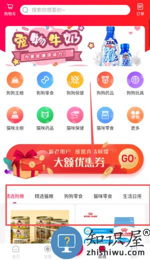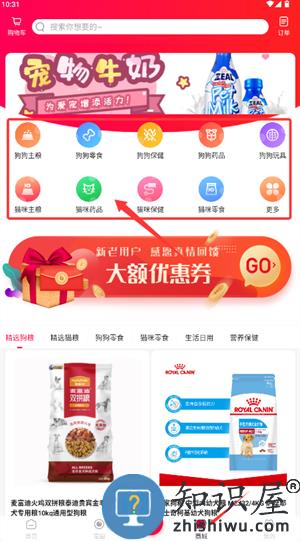 2、切换至商城页面提供犬猫用品分类,便于选购宠物所需商品。
