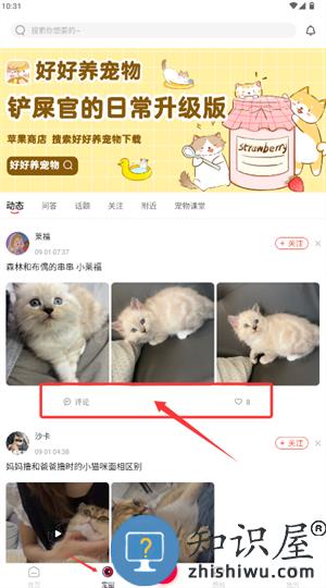 3、进入宠圈版块可浏览用户分享动态,支持点赞评论互动交流。