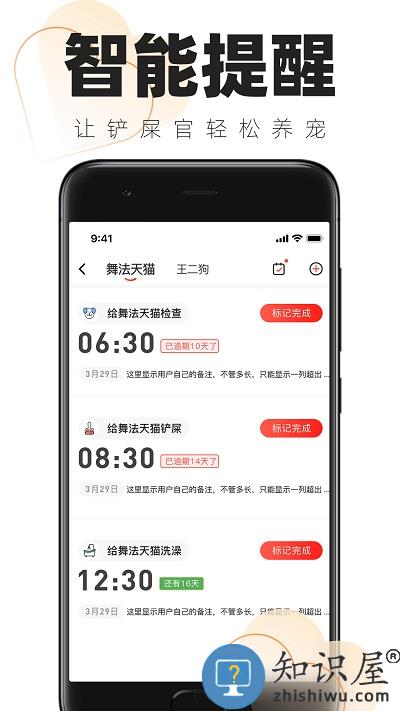 您可以设定计划,包括铲屎、注射疫苗、驱虫、洗澡、剪指甲等等几十种常用的2265提醒,当然您也可以自定义提醒内容,非常人性化。