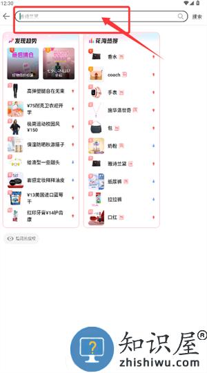 2、返回首页通过顶部搜索框输入关键词,快速定位心仪商品。