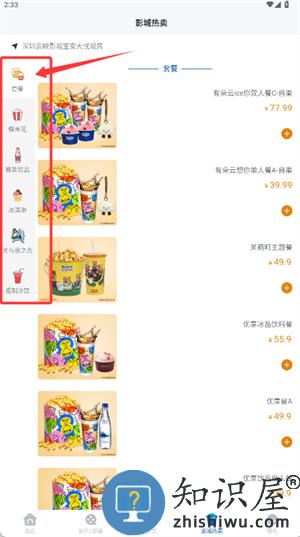 3、进入卖品专区可选购套餐与零食等商品,并完成支付流程。