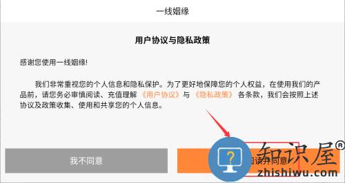 1、启动一线姻缘应用,在协议页面点击“我已阅读并同意”授权。