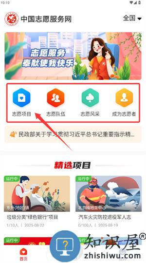 1、登录平台首页浏览精选志愿项目,可查看招募人数与截止日期。