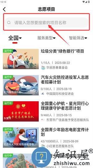 2.项目搜索,搜寻近期志愿项目,随时报名做志愿。