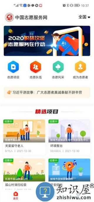 4、成功登陆平台后用户可以点击首页的志愿项目,首先可以先选择一下地区,然后会出现所有可以参加的志愿项目。