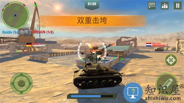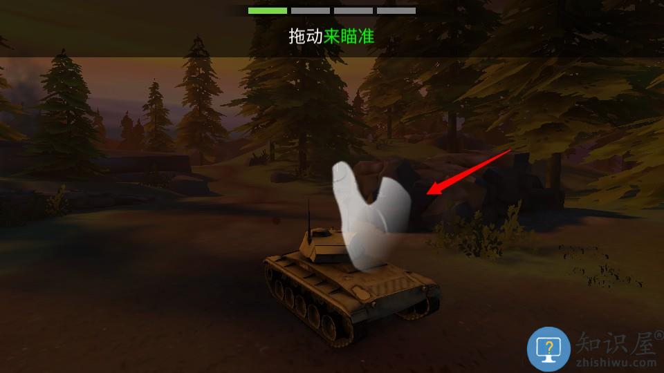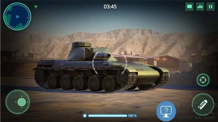 4、使用左方轮盘控制坦克移动,右侧瞄准开镜和射击,左右滑动其他区域控制坦克瞄准目标。