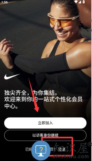 1、下载nike耐克官方旗舰店app后使用账号登录或注册新用户。